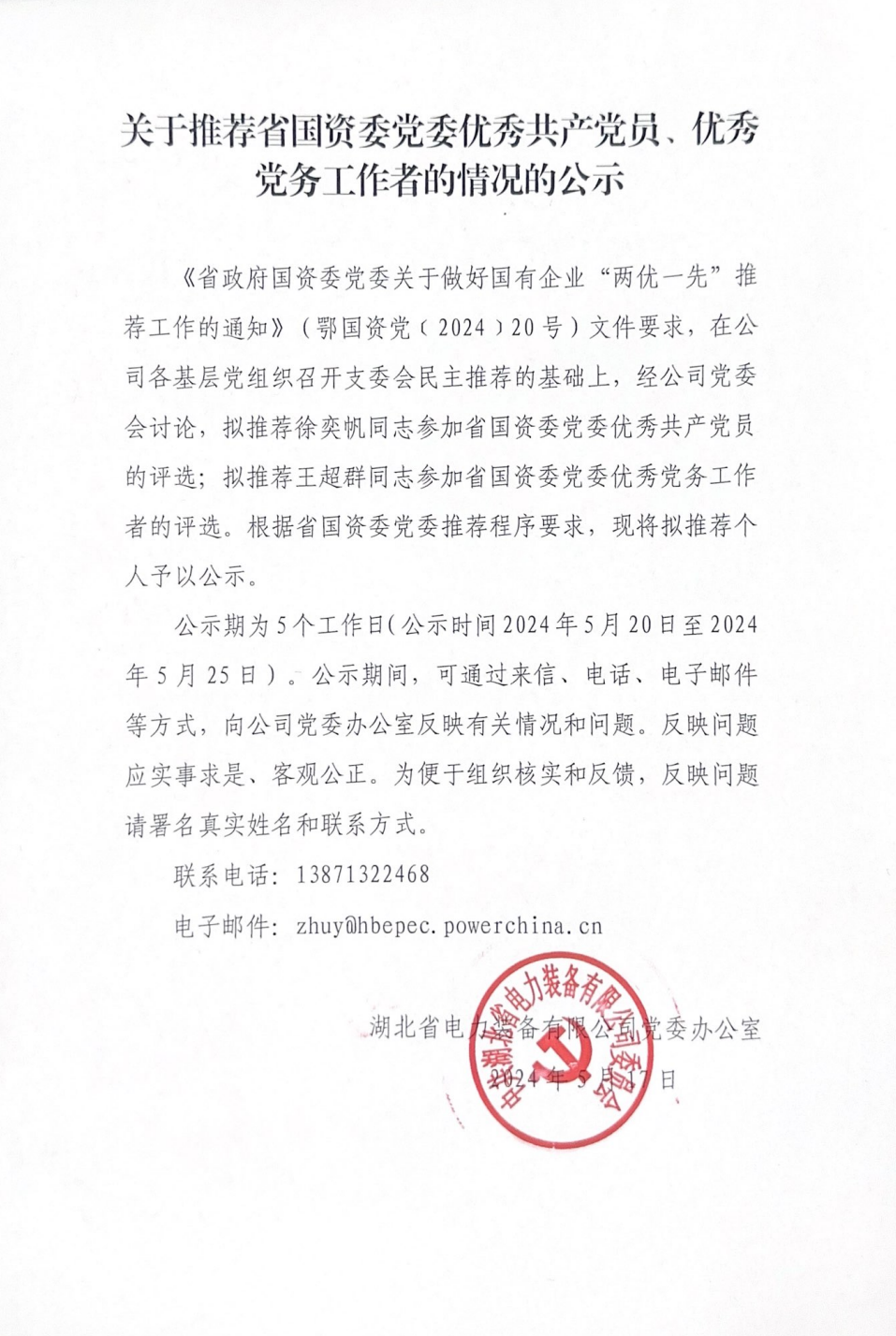 關(guān)于推薦省國資委黨委優(yōu)秀共產(chǎn)黨員、優(yōu)秀黨務(wù)工作者的情況的公示